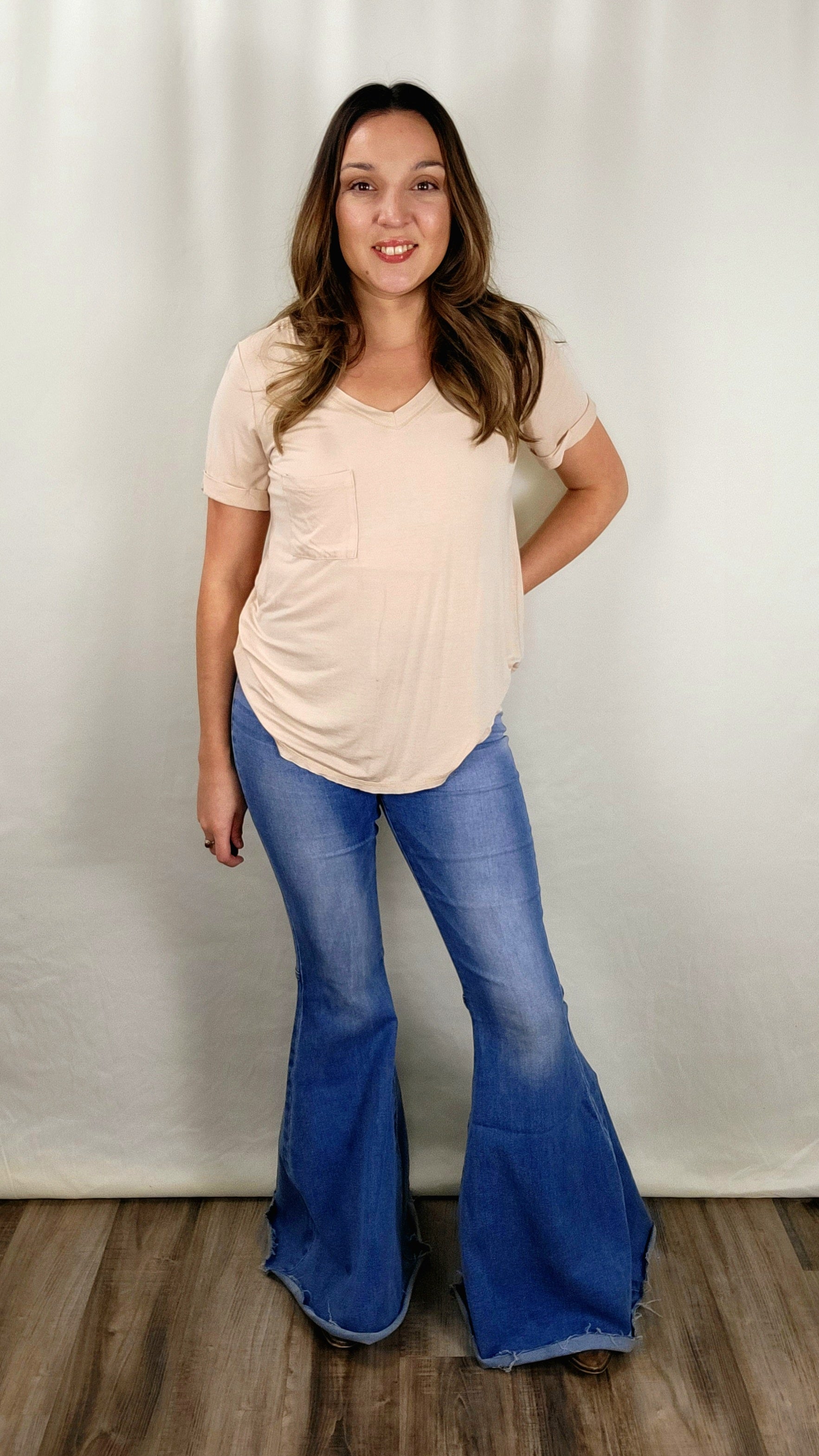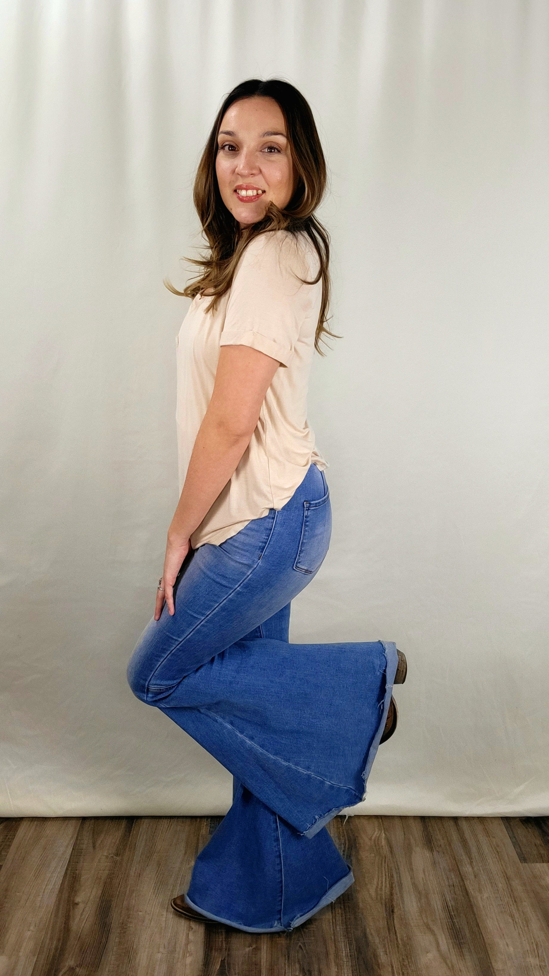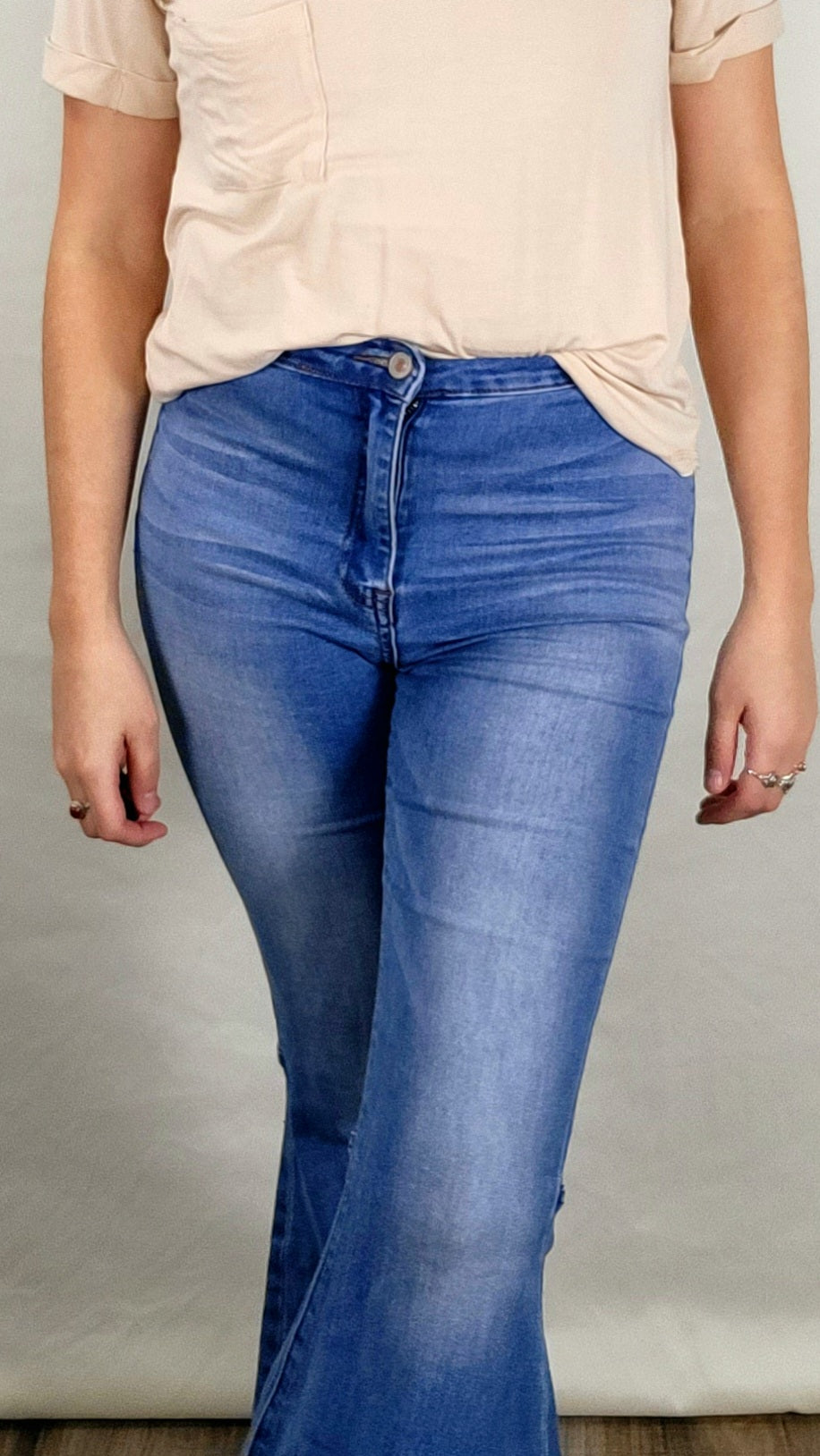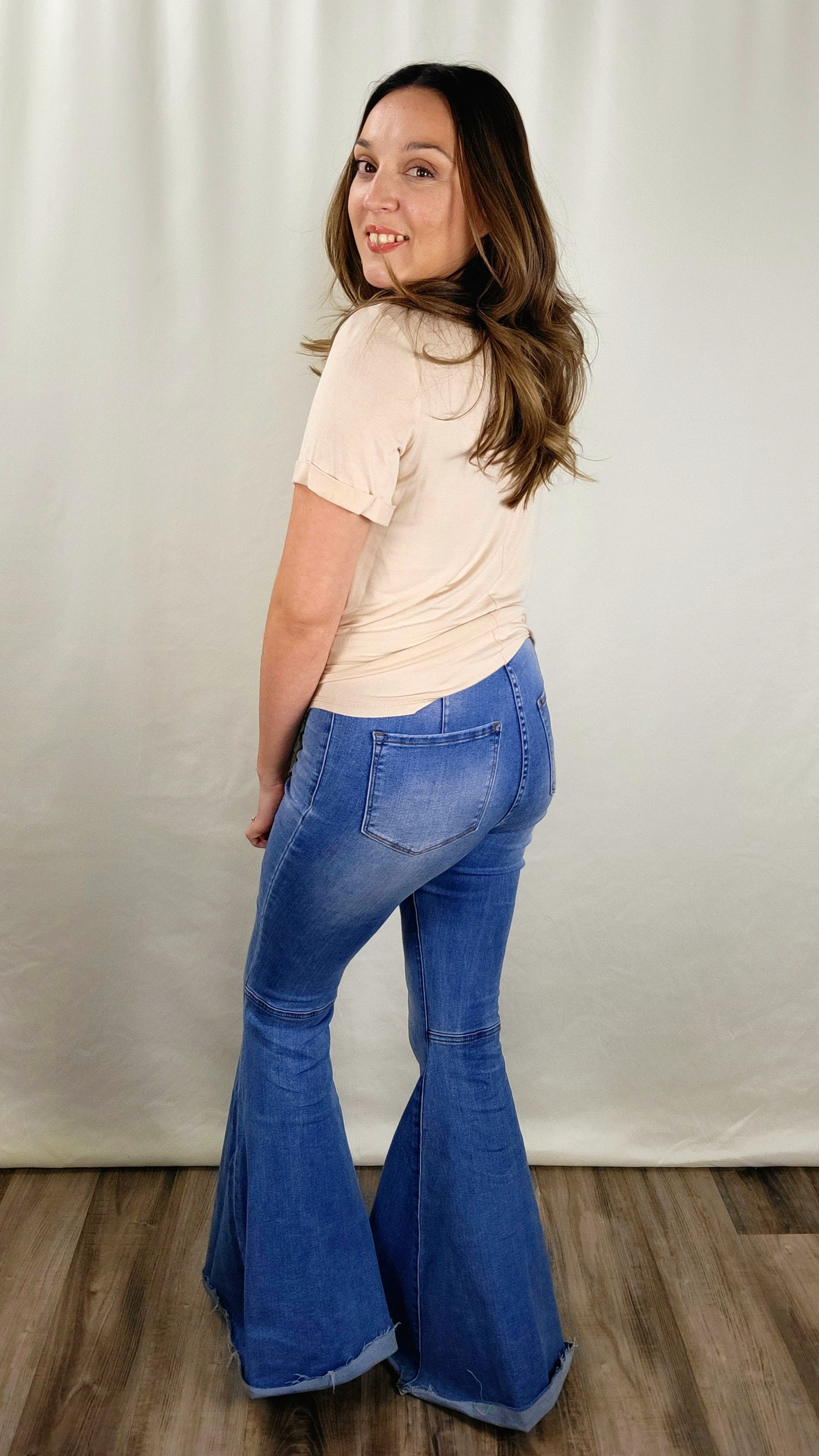 Introducing "Bellissima Bellbottoms" – the bell-bottom jeans you've been searching for! Inspired by the iconic Free People style, these KanCan bell-bottoms are designed to bring out your inner free spirit.