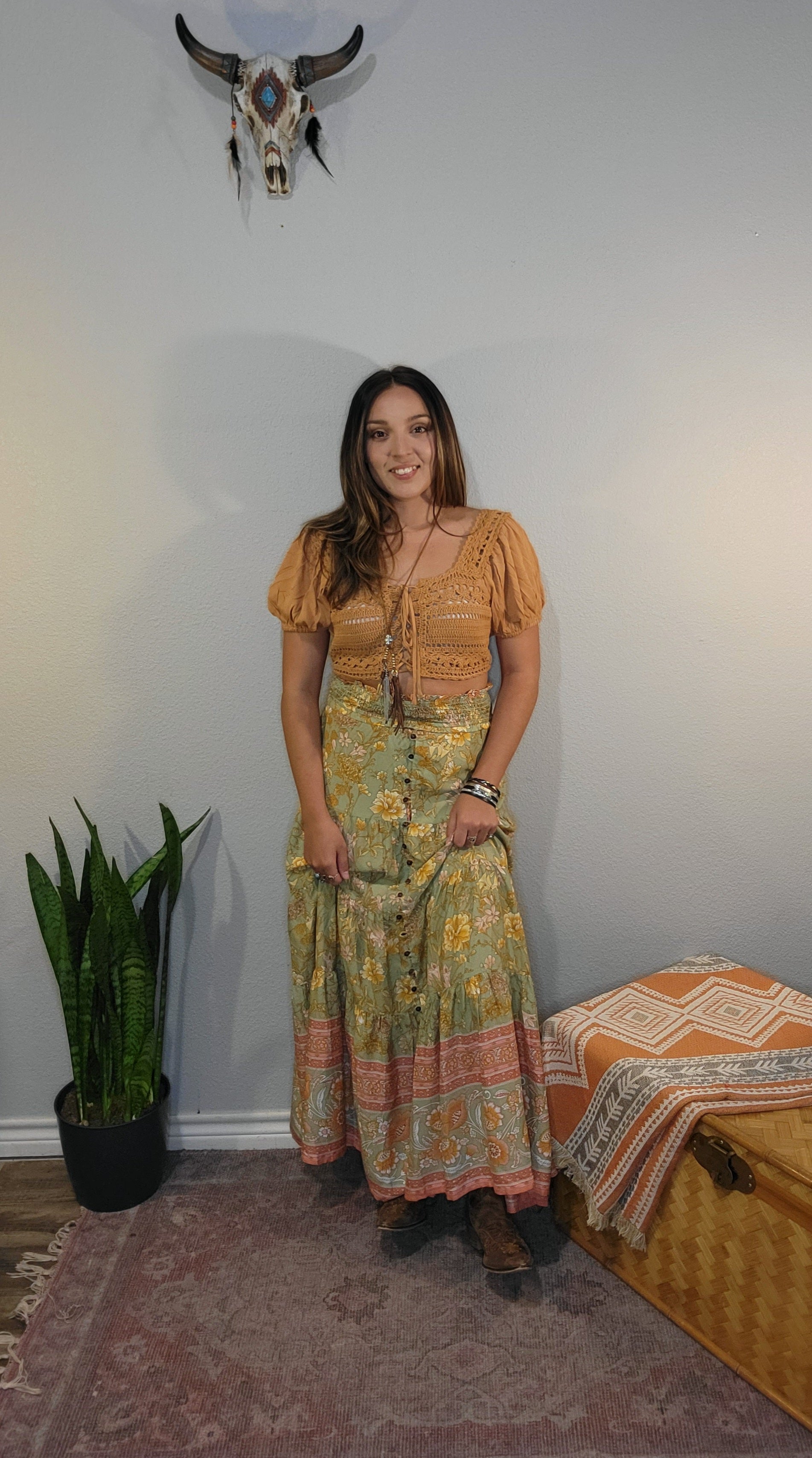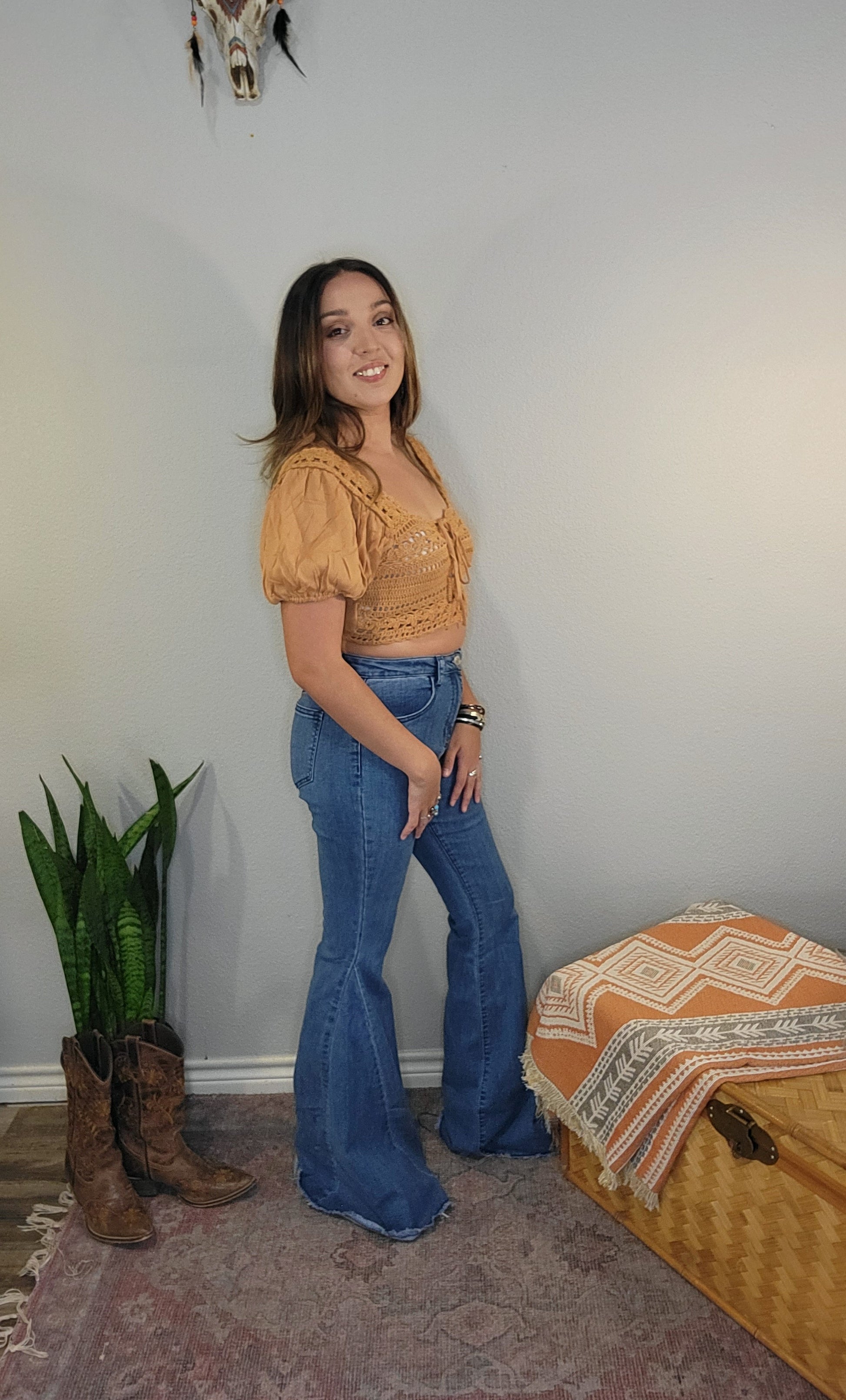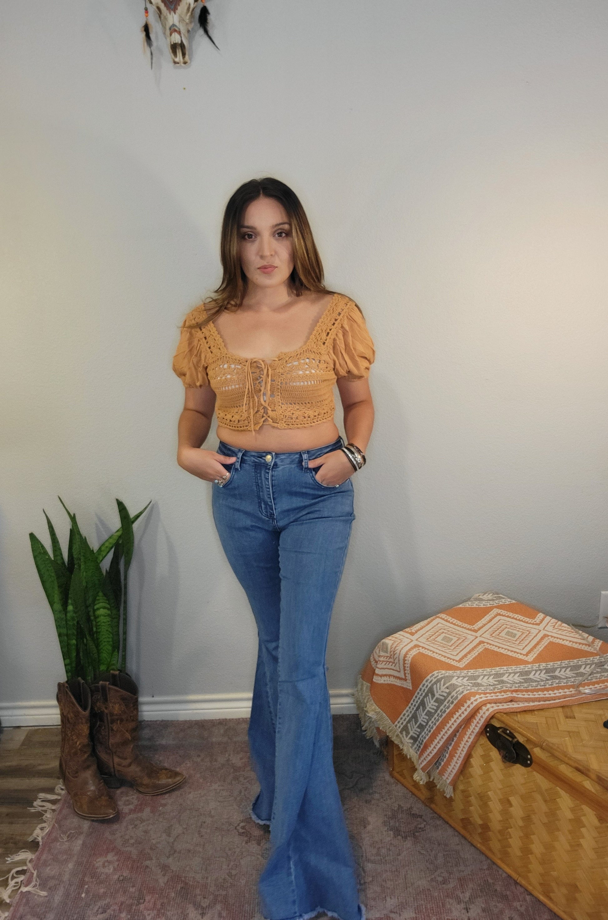 Boho Lace-Up Crochet Crop