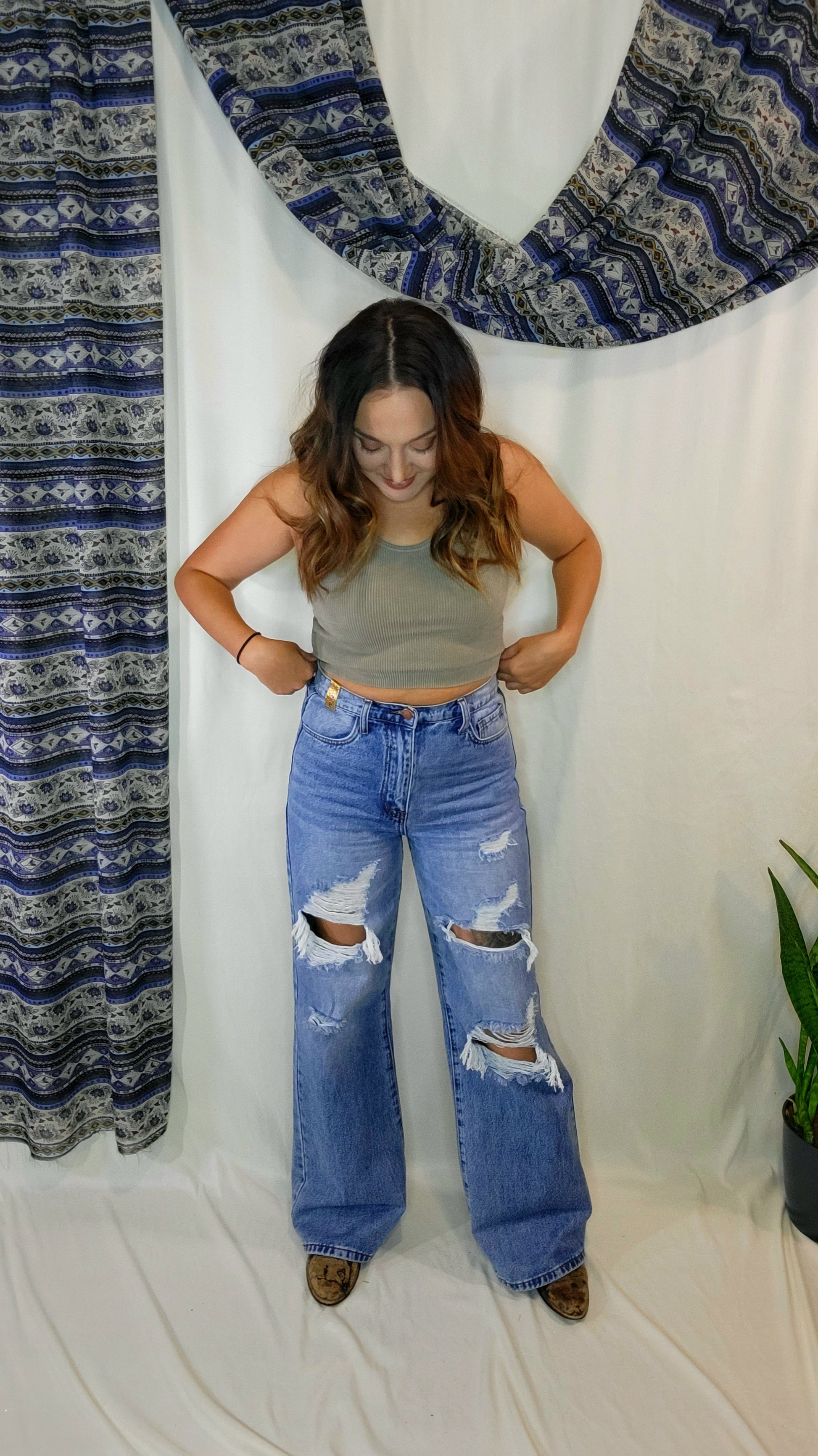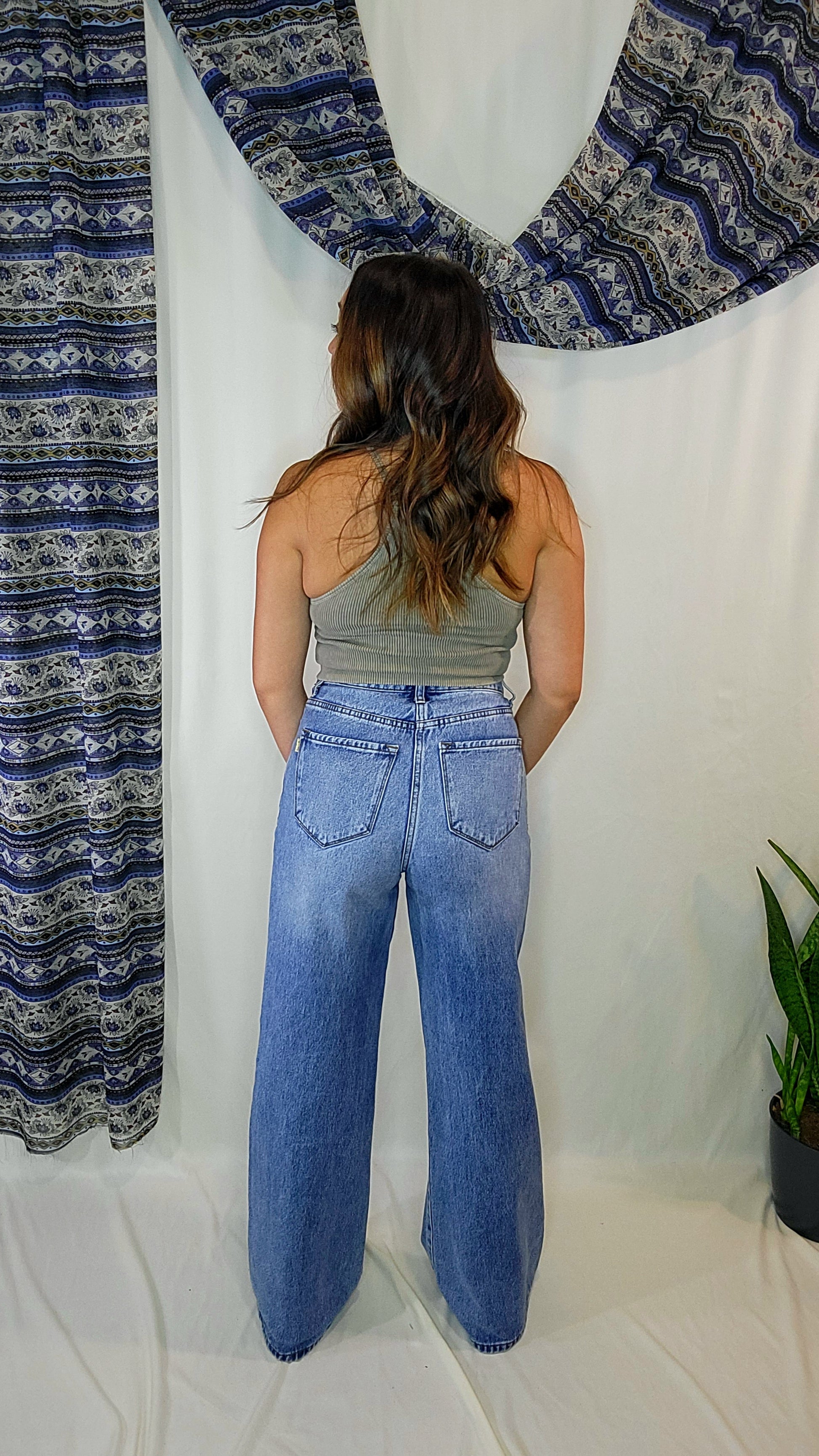 Our Denim Blues High-Waisted Jeans are expertly crafted with 100% cotton, offering a sophisticated look and a comfy fit. These jeans ensure a slimming effect on the midsection, enhancing your natural shape while providing durability and breathability. The wide leg look is the perfect addition to your fashion-forward wardrobe.