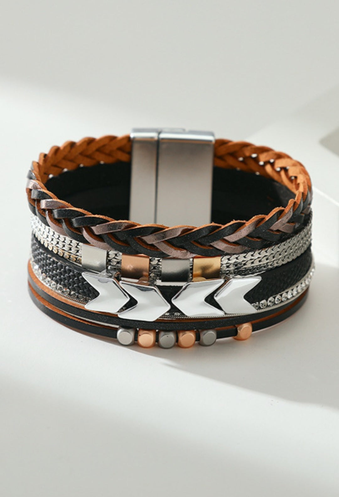 Multi Strand Leather Bracelet with Magnetic Clasp.