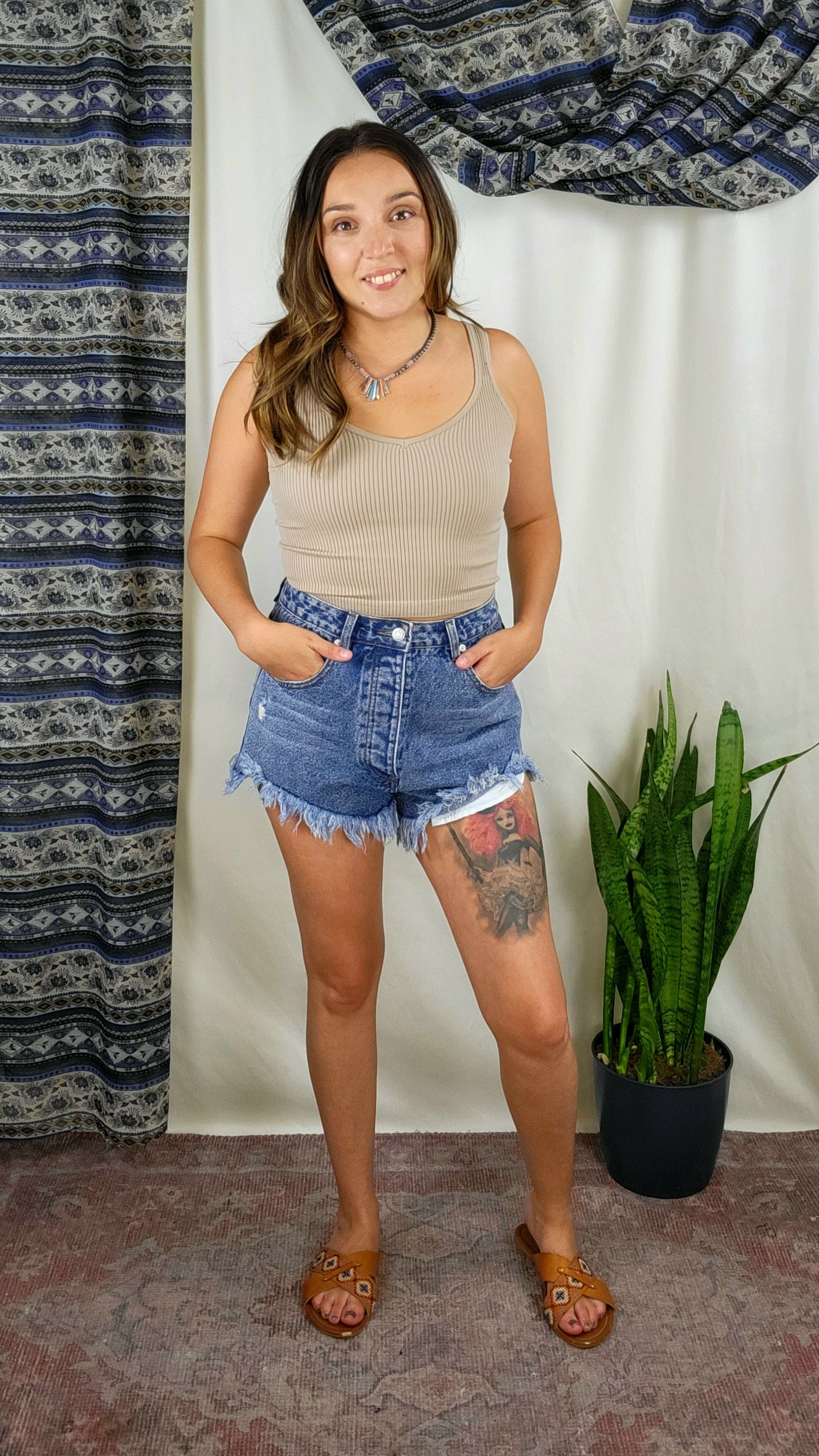 The possibilities are endless with the basic V-Neck Crop Tank. The perfect balance of comfort and style. The ribbed texture creates a flattering silhouette that accentuates every curve beautifully.